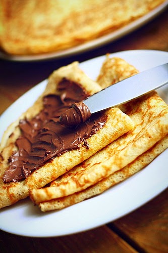 Para que la crema de chocolate quede derretida, cuando retires el crepe de la sartén úntalo rápidamente con la crema de chocolate, dóblalo y listo para comer.