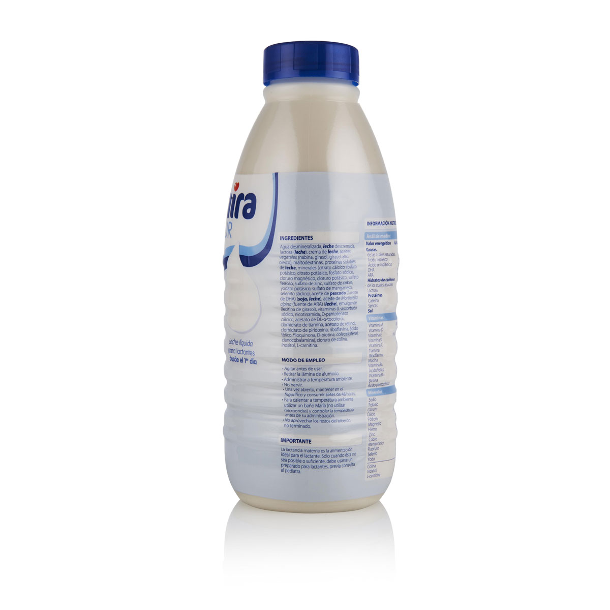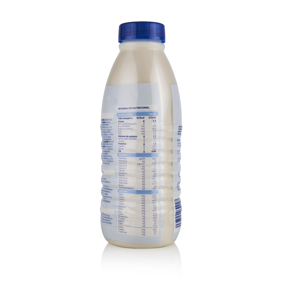 Agua desmineralizada, leche descremada, lactosa (leche), crema de leche, aceites vegetales (nabina, girasol, girasol alto oleico), maltodextrinas, proteínas solubles de leche, minerales (citrato cálcico, fosfato potásico, citrato potásico, fosfato sódico, cloruro magnésico, cloruro potásico, sulfato ferroso, sulfato de zinc, sulfato de cobre, yodato potásico, sulfato de manganeso, selenito sódico), aceite de pescado (fuente de DHA) (soja, leche), aceite de Mortierella alpina (fuente de ARA) (leche), emulgente (lecitina de girasol), vitaminas (L-ascorbato sódico, nicotinamida, D-pantotenato cálcico, acetato de DL-α-tocoferol, clorhidrato de tiamina, acetato de retinol, clorhidrato de piridoxina, riboflavina, ácido fólico, filoquinona, D-biotina, colecalciferol, cianocobalamina), cloruro de colina, inositol, L-carnitina.