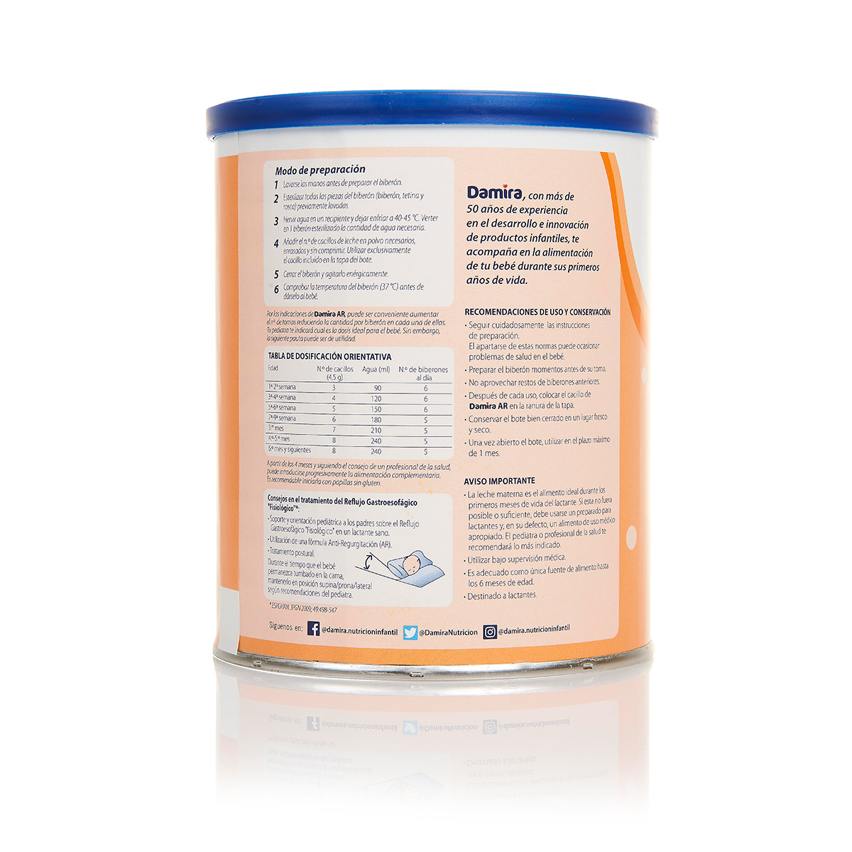 Damira AR es una leche indicada para el reflujo y vómitos frecuentes del lactante. Más información.